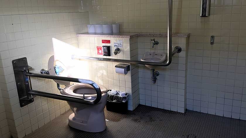 Instead of being located near the back of one of the public toilets, these accessible toilets are either placed between the men’s and women’s toilets or just inside. Occasionally, it may be only on the woman’s side, but not far enough in to create an awkward situations. They are designed not just for people with disabilities, but also for seniors and mothers with young children. As such, they typically adhere to the following concept: