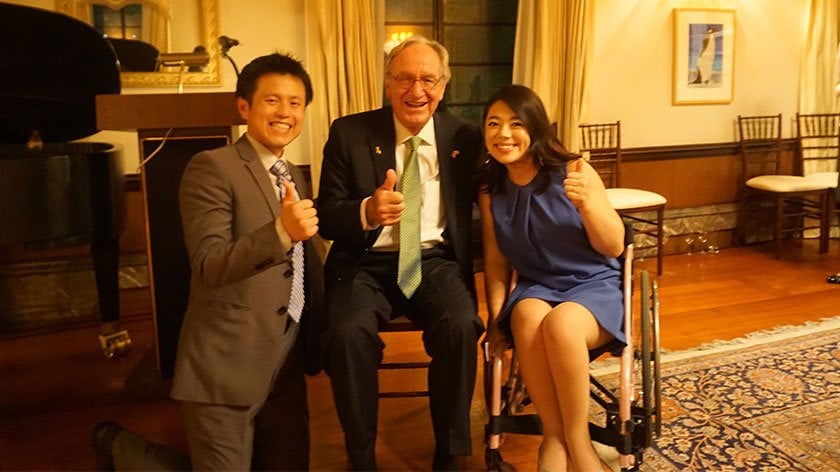 In the middle of September in 2016, I finished my research in the States and came back to my home country, Japan. The following week was very special. I was invited to a reception for Senator Tomas Harkin at the U.S. ambassador’s residence in Tokyo. Senator Thomas Harkin is one of the important people that pushed for the ADA (The Americans with Disabilities Act) to be signed into law and has put a strong effort into eliminating discrimination against people with disabilities for over 30 years.