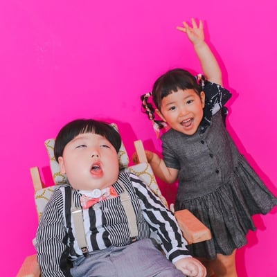 My 3-year-old sister has been in a good mood since the morning and is bouncing around. She’s also wearing a cute dress and laughing cheerfully.