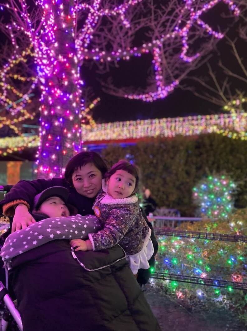 I don’t know for sure whether our son can see with his eyes and hear with his ears; doctors say that he can’t. But, when he saw fireworks, he was scared and cried. When he saw lights at an illumination, he was restless in enjoyment. For us, his family, we think his eyes can see and his ears can hear. That in itself is a miracle.