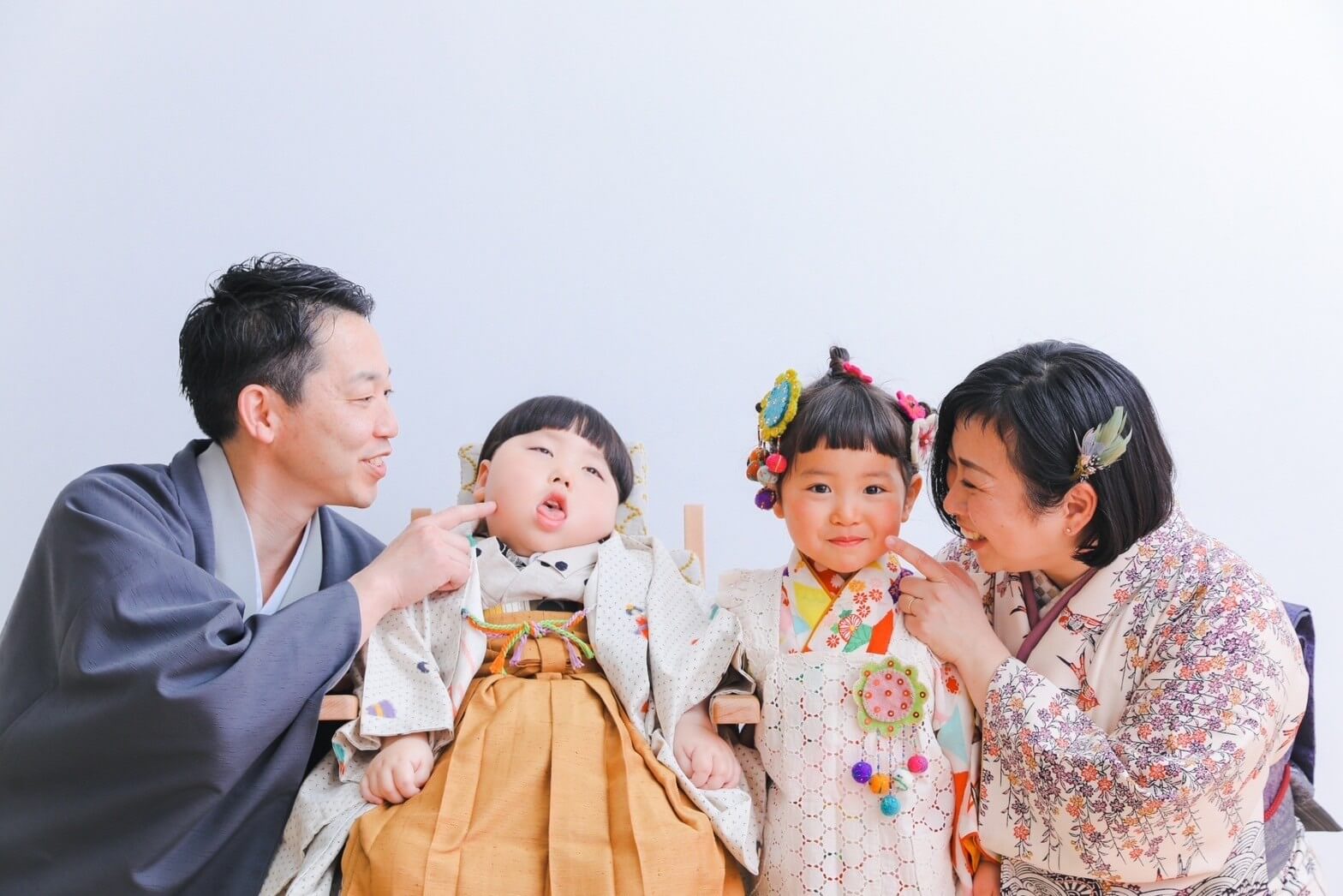 My 3-year-old sister has been in a good mood since the morning and is bouncing around. She’s also wearing a cute dress and laughing cheerfully.