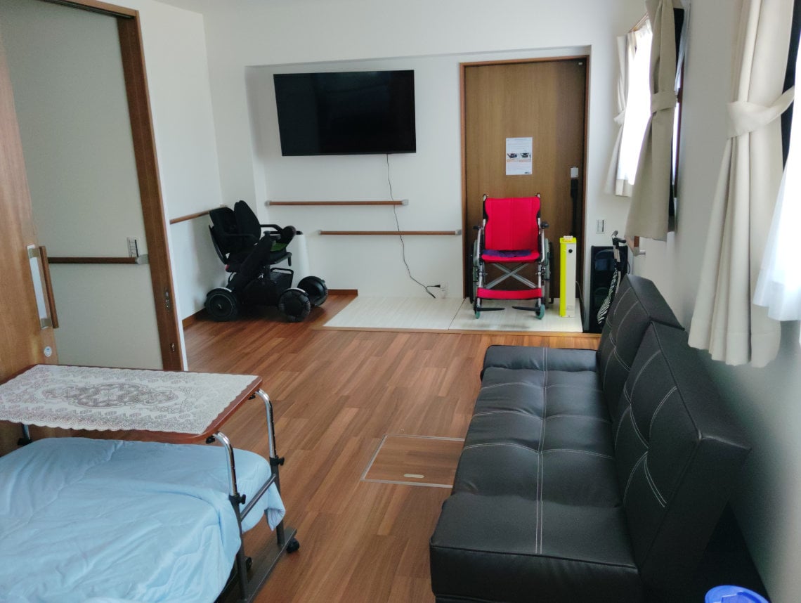The property is fully wheelchair accessible and includes two types of electric outdoor wheelchairs, plus indoor and bathing models. Guests can to switch from outdoor to indoor wheelchairs upon entering, in keeping with Japanese indoor cleanliness customs. Bathrooms and showers are fully accessible, and the floor plan allows free movement throughout the guest space.