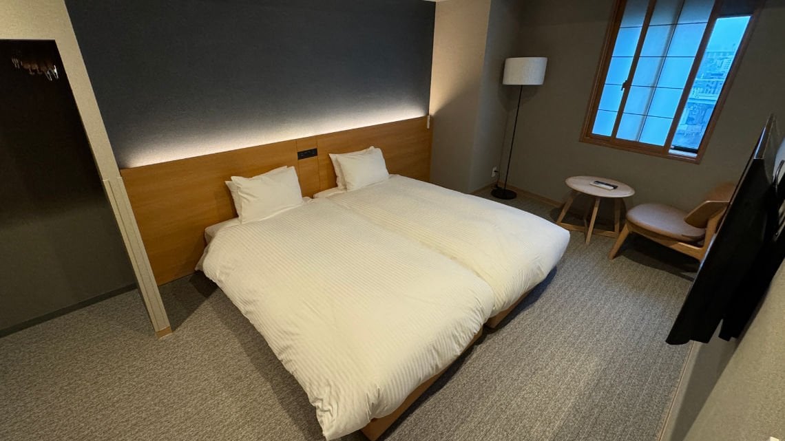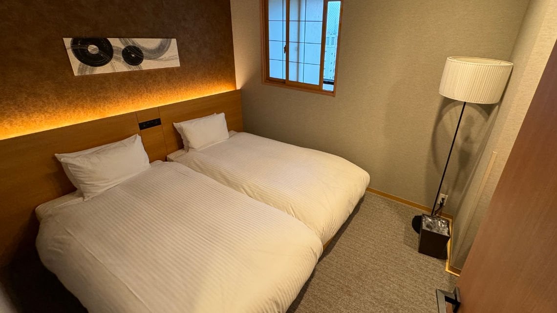 The hotel offers four distinct room types, each featuring two separate bedrooms with twin beds. From the Premium Two-bedroom Suite to the Two-Bedroom Japanese Suite with a tatami room, there’s a variety of options to suit different preferences. As listed on the website, “Dog-friendly” versions are available for all room types except the Premium Two-bedroom Suite. Please note that the “dog-friendly” designation is referring to pet dogs. Licensed guide dogs are permitted in all rooms regardless of the room type. The hotel website has floor plan for each room type which is great because the layout of some rooms may be better than others depending on if you are a wheelchair user or not.