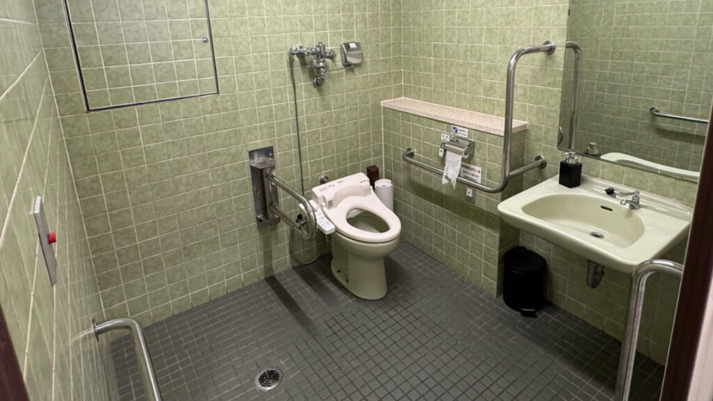 Accessible toilets are located at the top visitor center, the glass house, and all ropeway stations. While the toilets at the ropeway stations lack backrests, those at the visitor center and glass house are more fully equipped for accessibility needs.