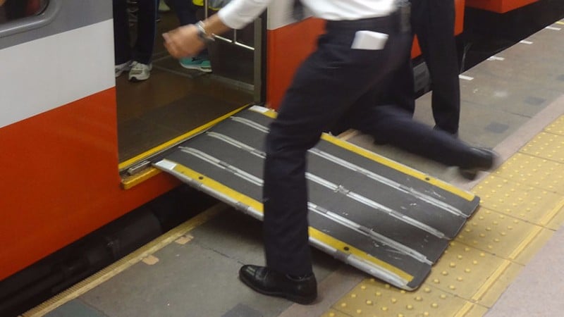 The Hakone Tozan Railway is a switchback railway which changes directions several times as it climbs 300 meters in altitude through a lush forest from Hakone-Yumoto to Gora. The step to the train from the platform is higher than most trains in Japan and requires a long portable ramp. Unfortunately, there is no dedicated wheelchair space so wheelchair users will need to sit by the door.