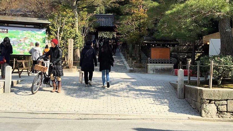 At the top of the street, the entrance to Ginkakuji starts with a rather steep incline which will be harder to get up than the street before it.