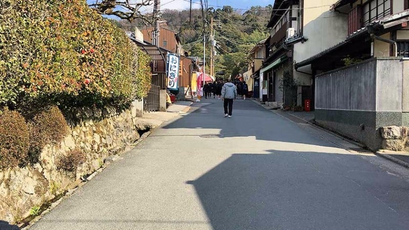 After arriving at the Ginkakuji-mae bus stop, or after coming from the opposite end of the Philosopher’s Walk, you will arrive at a small street leading up to Ginkakuji. It has many small stores offering food and souvenirs. The food stores are generally selling from the front door and are approachable by wheelchair. Unfortunately, some of the stores are inside and can be difficult for wheelchair users. The road itself is on an incline, which may be a challenge for those in manual wheelchairs or walking difficulties.