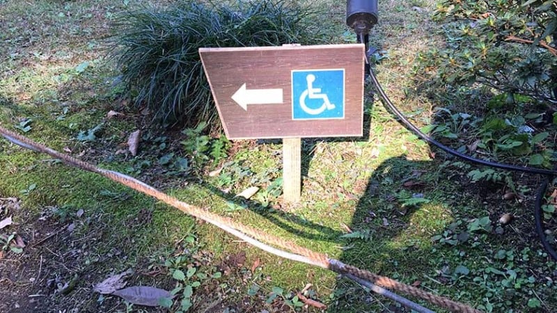 First, there are a few good things. Wheelchairs are available at the main gate for those who would like to borrow one. There is a small accessible toilet near the front entrance (all other toilets are not accessible). The park has two suggested routes for wheelchair users clearly listed on all maps along with the approximate time to complete them.
