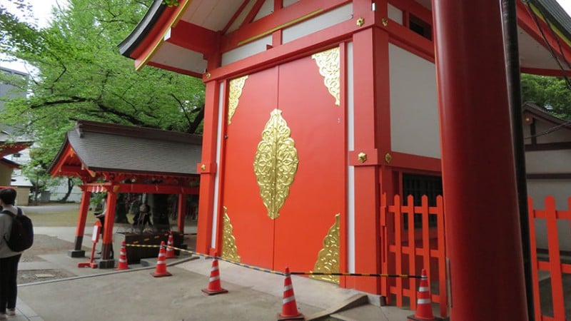 The shrine itself has undergone many changes, the biggest of which came after most of the shrine was destroyed in the fire-bombing of Tokyo. However, the copper lion statues (komainu) at the entrance which were made in the 18th century have survived many fires and wars.