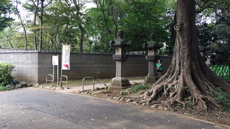 In the southern part of the park, Benten Hall is located on a small island in Shinobazu Pond. While the map park maps indicate it cannot be approached face on, it actually can be. However, expect some gravel and stone blocks. There is a ramp on the side of Benten Hall allowing access to the main sanctuary.